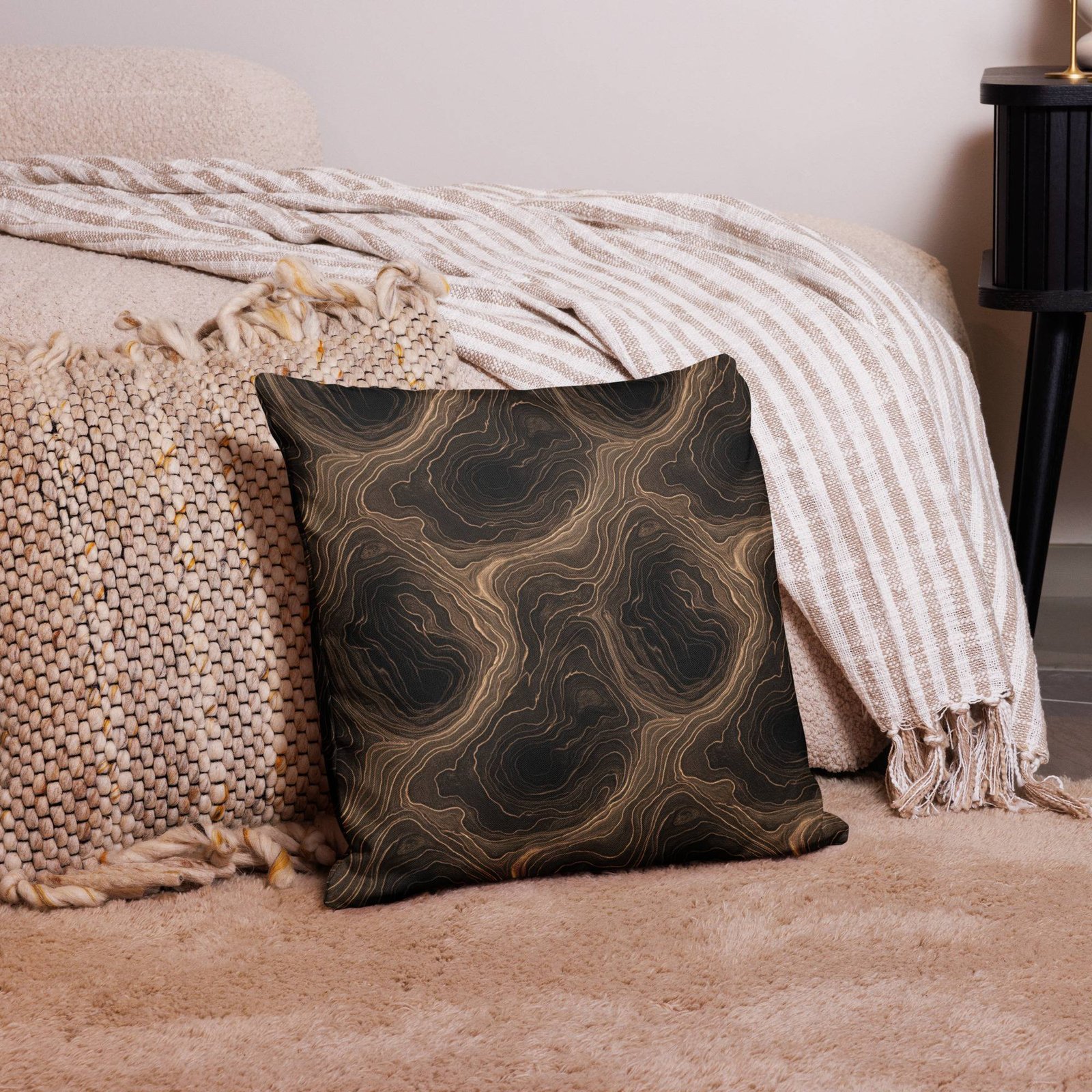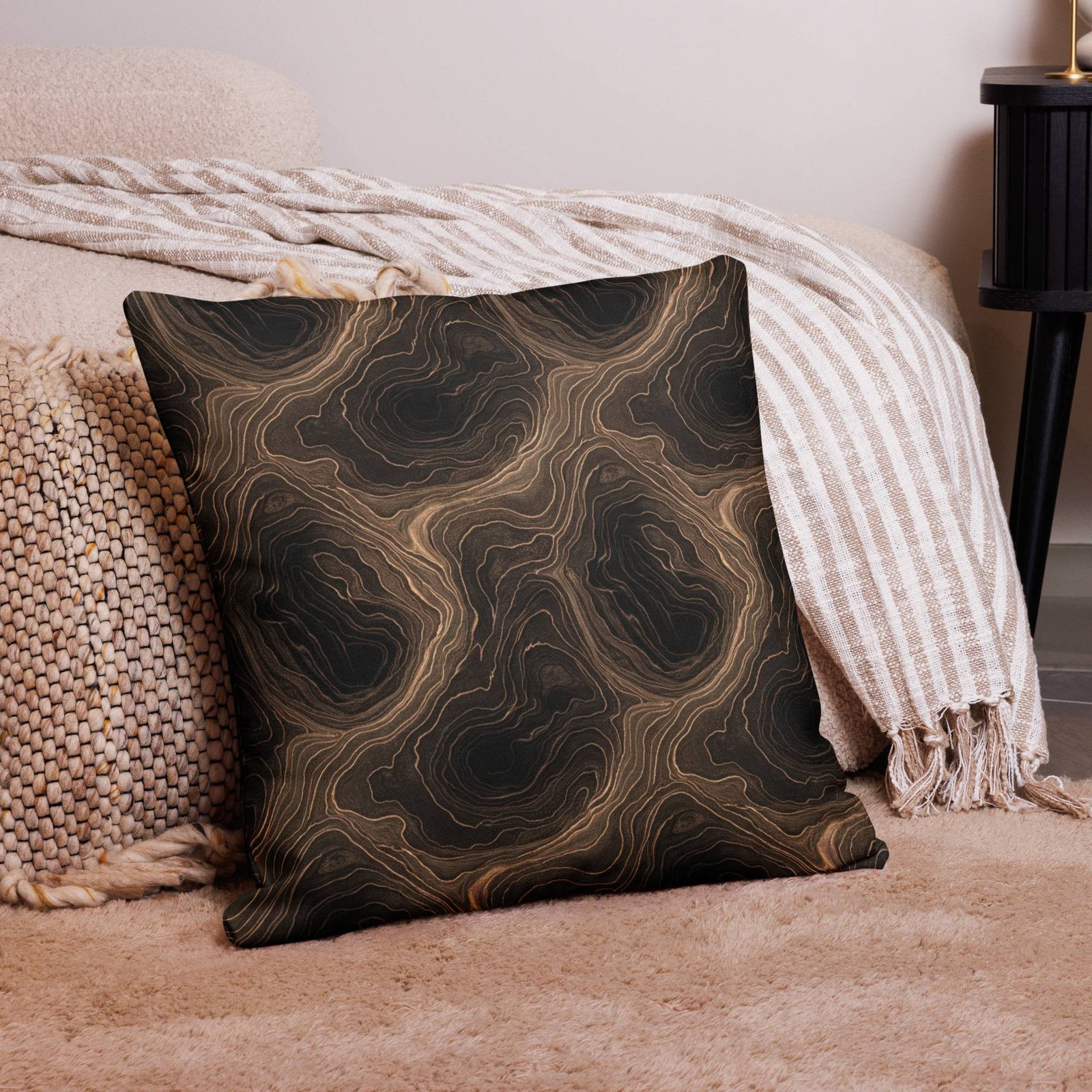 Earth: The All Eater, Erosion Grid – Premium Pillow – Black & Gold